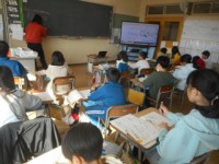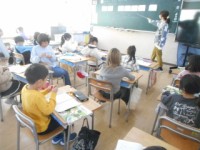 授業で描いた絵の鑑賞会の様子です。描いた絵を見せて、みんなの前で紹介します。絵の...