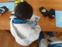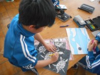 図工で版画をしていました。自分が表したい思い出や動物などを、彫刻刀でていねいに彫...