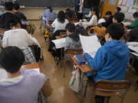 合唱の練習をしていました。その後、「失われた歌」の階名を教科書に書き込んでいまし...