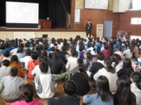 セーフティ・スタッフの方と姫ちゃんが来てくれました。1年生は戻ってくるほど大喜びです。