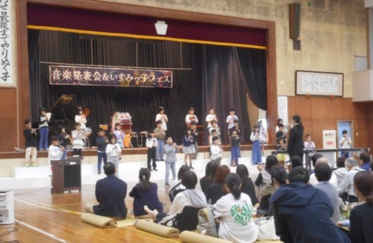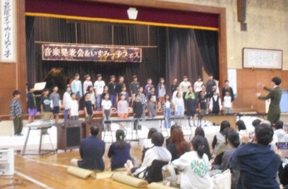 中:4年生の発表。斉唱「世界を旅する音楽室」ではリズムとノリをきちんと表現しました。
