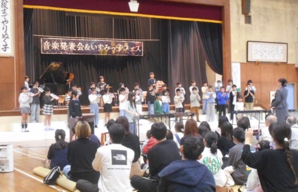 右:5年生の発表。合唱「大切なもの」では、とてもきれいな音の重なりを表現しました。