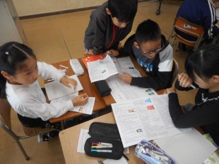「◎最後まで気付かない二人の紳士はどんな人物?」を設定し、班で話し合いながら学習を進めていました。
