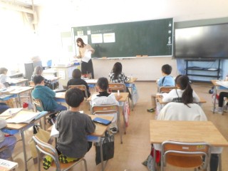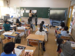 九九では3×9までですが、10になった場合はどのように考えたらよいか、子ども達の考えを発表していました。