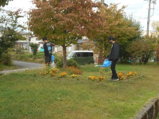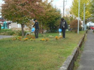 この日は飼育栽培委員会の5年生が校章花壇に水やりをしていました。