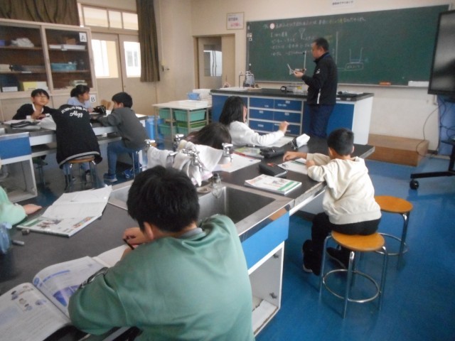 学習問題「◎水が沸騰してでてくる泡は、本当に水蒸気なのか」を設定し、学習をすすめていました。