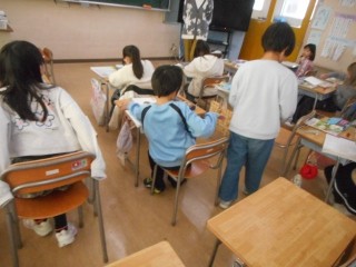 三角形が2つ、三角形と四角形が1つずつは、すぐに見付けることができた子ども達。