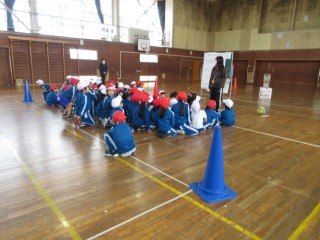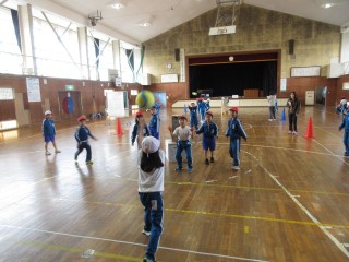 攻めと守りのチームに分かれて、的に当たるとポイントになるゲームをしていました。