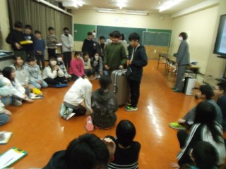 後半は、代表児童が税関職員役となり、手荷物の中から薬物を見つけるという体験を行いました。予想外の所に隠されていたため、すべてを見つけるまでには時間がかかりました。