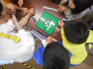 オセロの決勝戦 公開日 2025/12/16 更新日 2025/12/16 できごと 絶好調ランドのオセロ大会がついに決勝戦を迎えました。勝ち進んだ2年生と5年生の対決となりました。二人の応援団も一緒に試合を観戦しました。試合の結果、優勝は5年生となりました。 1年生 2年生 3年生 4年生 5年生 6年生