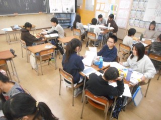 班ごとに自分の考えと、その理由を話し合いました。