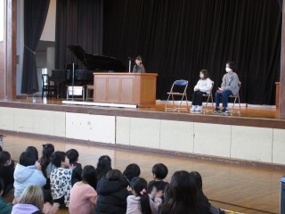 2学期の終業式では、1,3,5年の代表児童が「2学期がんばったこと」「冬休みに頑張ること」などを発表しました。