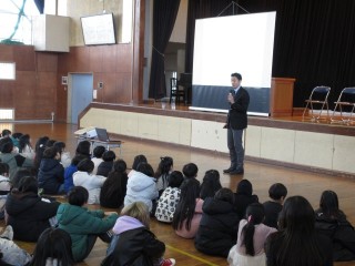 終業式終了後、生活指導主任から冬休みの過ごし方について指導がありました。