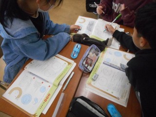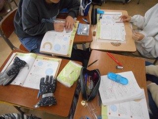 正五角形を円に沿って書いたり、角度を求めたり、個人やグループで学習を進めていました。