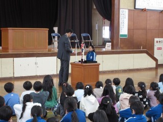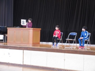 1,3,6年の代表児童が3学期にがんばりたいことを発表しました。