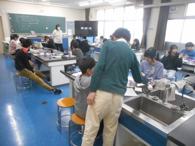 モーターを回すと、発光ダイオードや豆電球に明かりが付くことを確かめました。