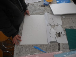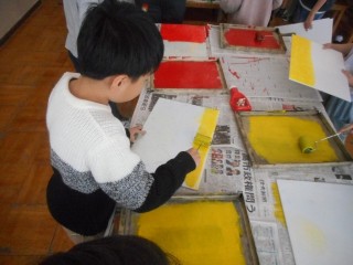 その上にインクをつけ、紙をのせてバレンこすって完成です。