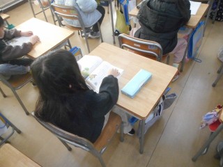また、教師が読むときに、指で字を追う姿が見られました。