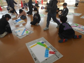 いろいろな模様になるローラーを使って、楽しそうに活動していました。