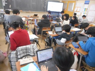 生活用水、工業用水などに状況を分け、それぞれについてタブレットで調べ、まとめていました。