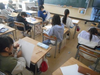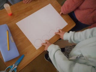 まず、教師が示した見本を参考に、雪だるまや動物など、自分が表したいものを決めました。