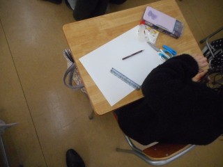 次に、画用紙に下絵を描き、はさみで切り抜いていました。