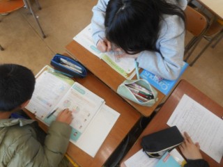 教科書の問題を自力で解いたり、友達に質問したりしながら進めていました。