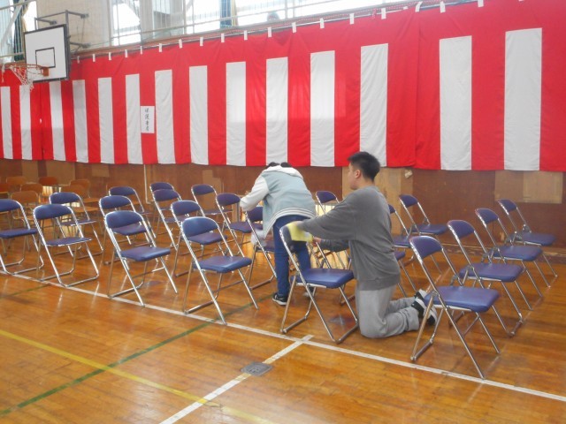 こちらは、始業式の後に行った入学式準備の様子です。