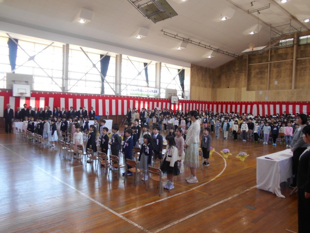 1年生43名は一人ずつ名前を呼ばれると元気に返事をしました。
