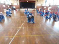 跳び箱の学習をしていました。特に踏み切り板の使い方を繰り返し練習していました。踏...