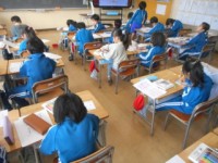 1・2組ともに1年生で学習した漢字の練習をしていました。ノートを見ながら、画数を...