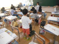 ドリルを使って、漢字の習熟を行っていました。2年生になると、画数の多い感じを学習...