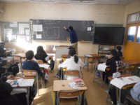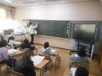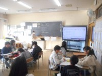 教材文「海のいのち」の学習です。学習問題「◎なぜ瀬の主を殺さなかったのか?」を設定して進めていました。班ごとに自分の考えと、その理由を話し合いました。叙述の細かな表現を大切にする姿が見られました。