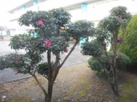 低学年玄関脇にヤブツバキが植えてあります。最近、花が咲き始めました。これから寒い冬になるのですが、赤いきれいな花を見ると明るい気持ちになります。
