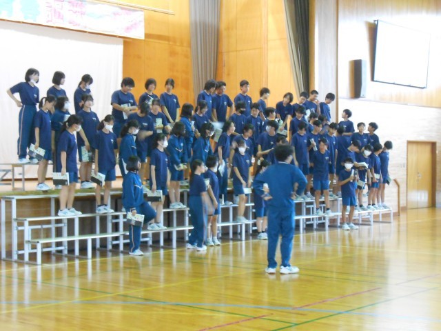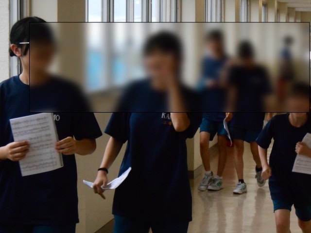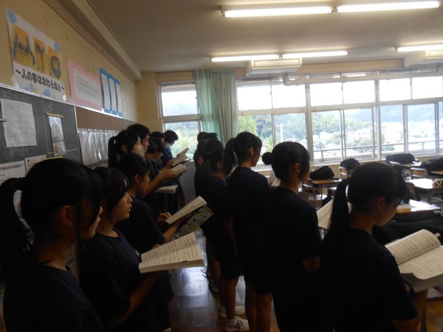終学活が終わると加茂中学校中に歌声が響いてきます。初日とはおもえない、素敵な歌声が聞こえてきます。