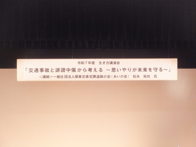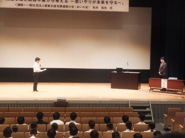 10月10日(金)にPTA主催の「生き方講演会」を開催しました。今年度は、一般社団法人関東交通犯罪遺族の会(あいの会)の松永拓也様を講師に招き、講演していただきました。