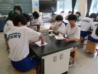 2時間目の2年生の理科の授業では消化酵素について学んでいました。片栗粉が固まったものに胃薬を入れるとそのかたまりがだんだん緩くなっていくものでした。生徒たちはとても不思議そうに実験に取り組んでいました...