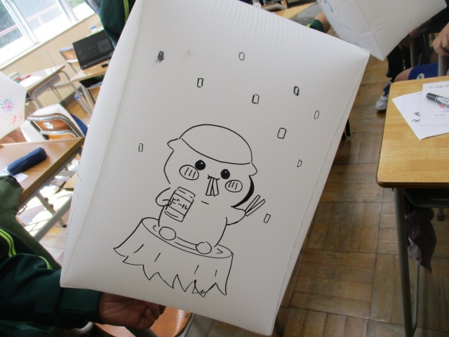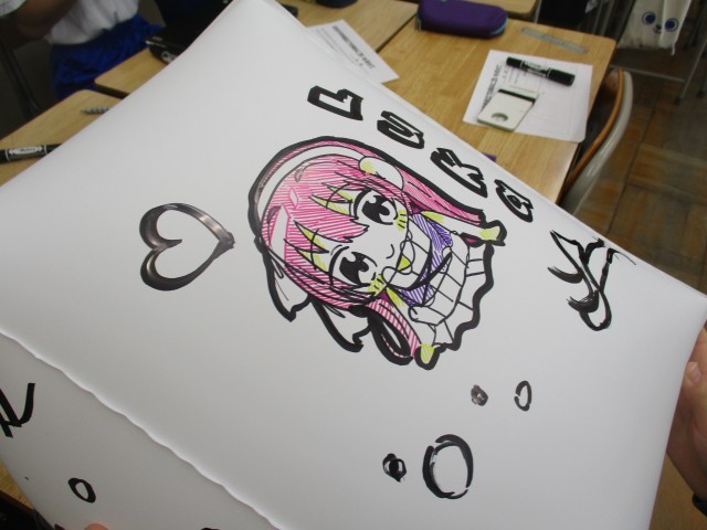 生徒たちは思い思いのメッセージやイラストを描いています。