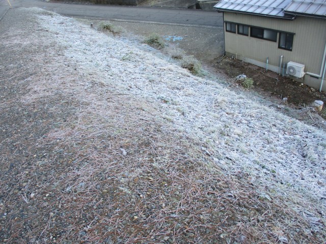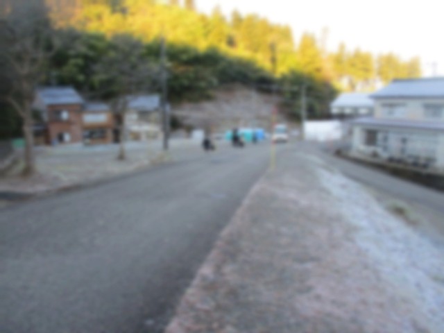 とても寒い朝で霜が降り、学校の駐車場の水たまりは凍っていました。