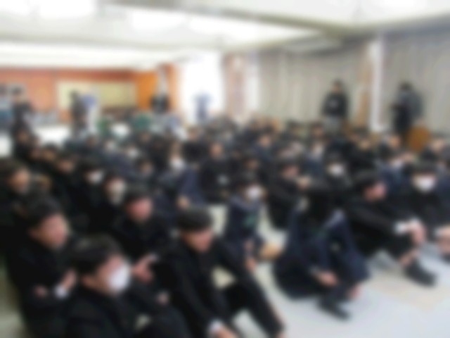 講話の途中に生徒同士で話し合う場面が何度かあり