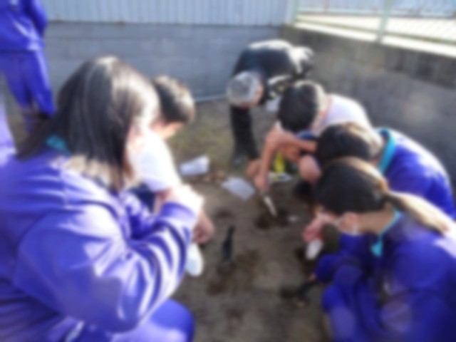 来年の春、スイセンの花が美しく咲いてくれることを願い、今日はボランティア委員が運営し、3年生1人ひとりがスイセンの球根を植える活動を行いました。3年生が卒業する頃、もしくはその後に花を咲かせることになると思いますが、3年生が残してくれる足跡の一つとなっていくことと思います。1つ1つの活動に、3年生の思いがより詰まっていく時期になってきましたね。