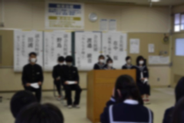本日は「立会演説会」そして引き続いて「投票」「開票」が行われました。立候補者、責任者の皆さんは、まとまった演説をするのは緊張していたと思いますが、それぞれが自分の考えを堂々と発表しており、その思いは全校に伝わっていたと感じました。演説会の最後は3年生からの質問が寄せられましたが、それに対する返答も自分の言葉できちんと伝えていました。来年度の生徒会を担う皆さんの演説から、今後の生徒会のさらなる発展に期待できる様子でした。