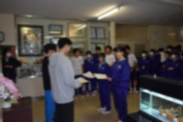 今日は、今年須田中に来てくれていた新潟経営大学の学生ボランティアさんの最終日でした。2名のボランティアさんは、体育の授業はじめいろいろな場面で、各学年の授業のサポートをしてくれたり、校舎美化のお手伝いをしてくれたりしていました。約半年のボランティアでしたが、いろいろな授業で生徒の皆さんとかかわる場面が多くありました。今日は「サプライズ」で、最後学校を出ようとしたタイミングで全校生徒がお礼の言葉を伝え、メッセージカードを渡しました。年齢も近い存在ということで、生徒の皆さんにとっても話しやすい存在だったことと思います。いろいろな場面でお世話になりました。ボランティアのお二人には、今後の大学生活、その先のご活躍を願っています。ありがとうございました!
