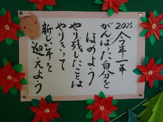 面談を終えて、二学期残りの日々の過ごし方を考えてみた人もいるかもしれません。写真1枚目は、教務室入り口に掲示されている、アシスタントさんからのメッセージです。2学期残り、さらには2025年の締めくくりとなる時期にになります。一人一人にとって、良い1年の締めくくりができるよう、期待しています。