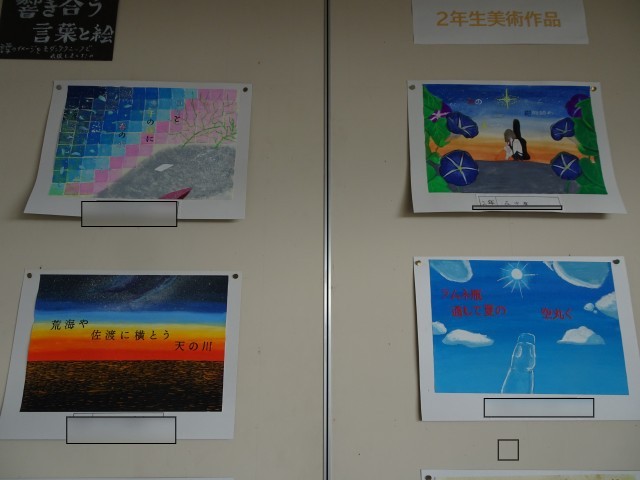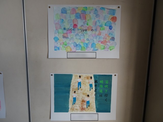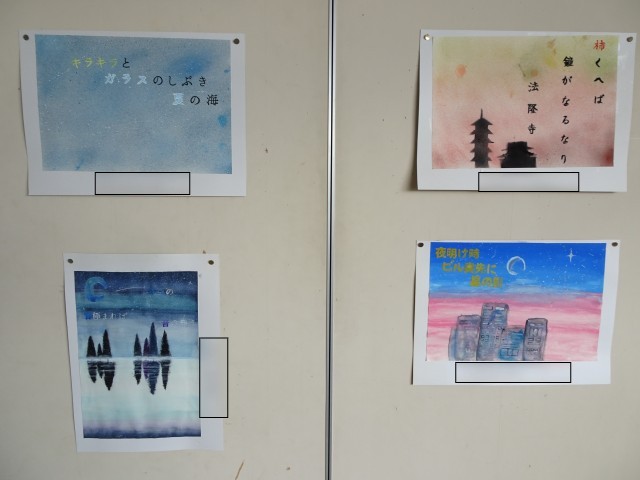 面談時には、一部の美術作品が展示されました。ご覧いただくことができた保護者の皆様からは、展示教室に足を運んでいただいたかと思います。飾られた雰囲気が少しでも伝わると良いと思い、写真をアップしました。様子を見てみてください。