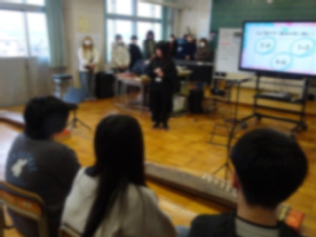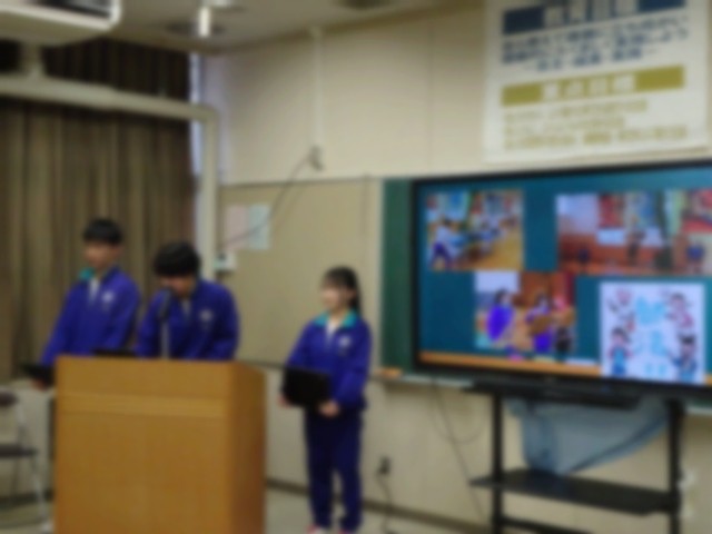 学校説明では、2年生の新生徒会三役の3人が、須田中の様子についてスライドを使って発表しました。中にクイズを盛り込んだり、質問したりジェスチャーを見せたりして、少しでも聞いている皆さんが楽しんでくれる内容になるよう、2年生は工夫してくれました。6年生の皆さんが、少しでも中学校生活が楽しみになってくれると良いです。