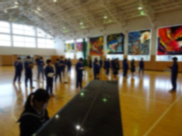 そして、今日は1,2年生は合同で合唱練習を行いました。卒業式の全校合唱「旅立ちの日に」を仕上げるべく、1,2年生でパート別になって練習を行い、最後は全体が体育館に集まって合わせました。卒業式の日、3年生を最後に送る歌として、心がこもった合唱になっていくことを願っています。(写真1~4枚目)