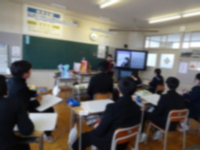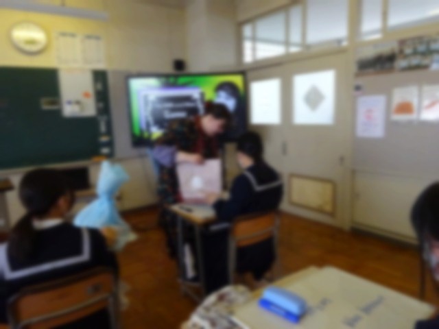 英語の授業はALTのアリス先生の卒業前最後の授業でした。3年間の文法を復習する、アリス先生作のスペシャルクイズを3年生は楽しく答えていました。ちょっとした(?)プレゼントもあり、3年生は大喜びでした!アリス先生、大変お世話になりました!