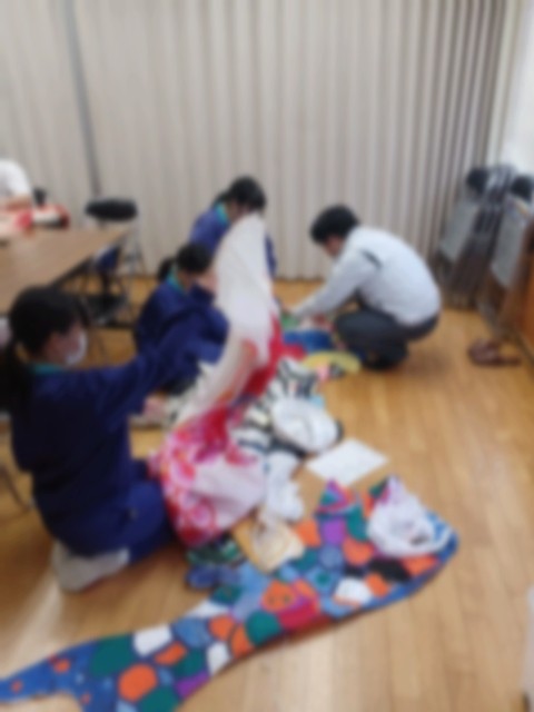 昼からは、加茂市の「鯉のぼりをあげよう会」の方から須田中に再度来校いただき、須田中オリジナルの鯉のぼりに口紐付けを行う作業をしました。これはこの5月には実際に外で泳ぐ鯉のぼりになるそうです。自分たちで色づけをして、紐をつけたので、泳いでいる姿を見るのが楽しみになります。