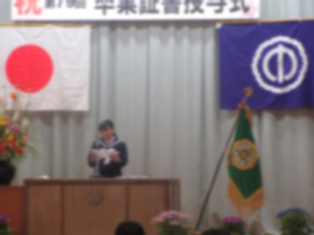 式は厳粛な雰囲気の中、それぞれが役割をしっかりと果たし、卒業生、在校生の思いが伝わる式となりました。卒業生はこれまでの学校生活そのままの、大変立派な姿で卒業証書を受け取り、一人一人がこれからに向けて決意の言葉を発表していました。校長先生、来賓でいらっしゃった教育委員さん、育友会会長さん、さらには送辞や答辞の言葉はそれぞれ思いがこもり、会場は感動に包まれました。全校合唱に続き、最後は卒業生7人での最後の共同作業となる卒業合唱を見事に披露しました。卒業生の姿は後輩にも強く焼き付いたことと思います。これからの須田中に、在校生が卒業生の思いを引継ぎ、すばらしい学校にしていってくれることをこれから期待しています。